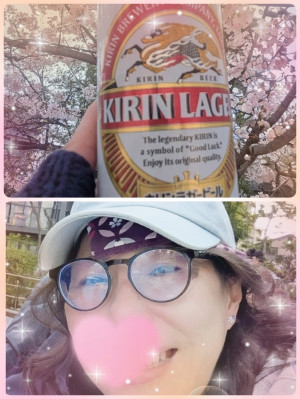 青空の下で満開の桜を眺めながらの一杯は格別〜💓